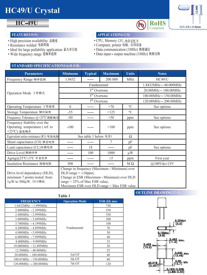 • HC-49 U Crystal 產(chǎn)品型號(hào):