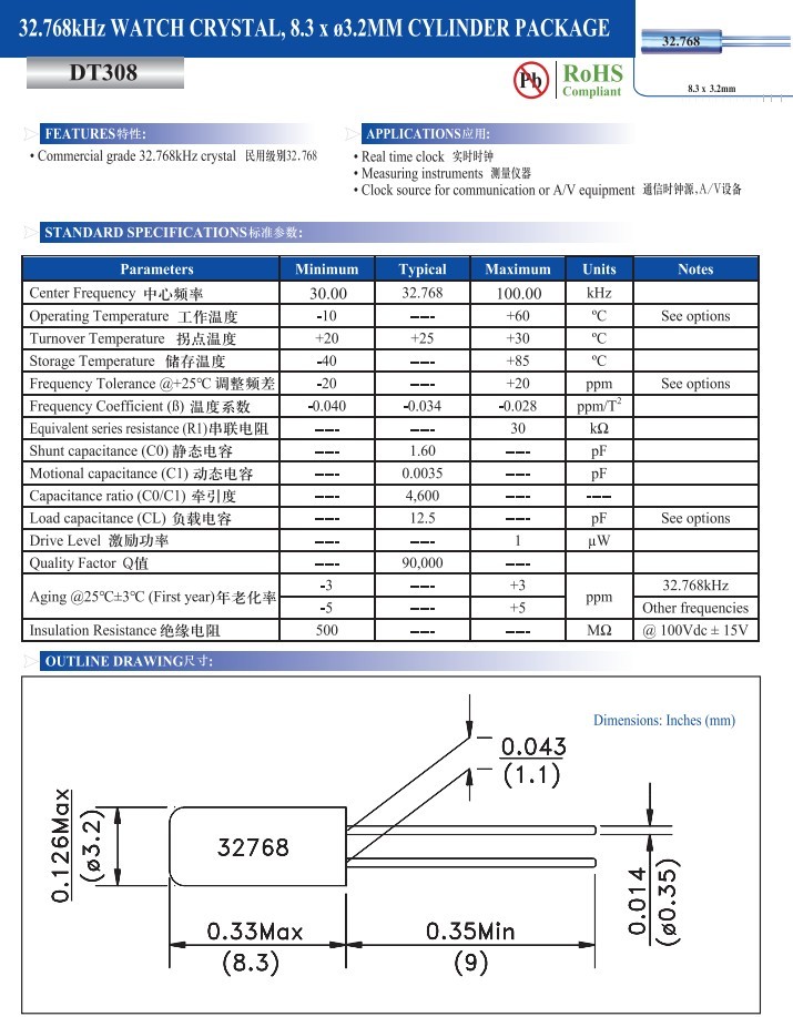 Khz Cylindrical Thru-hole Crystals